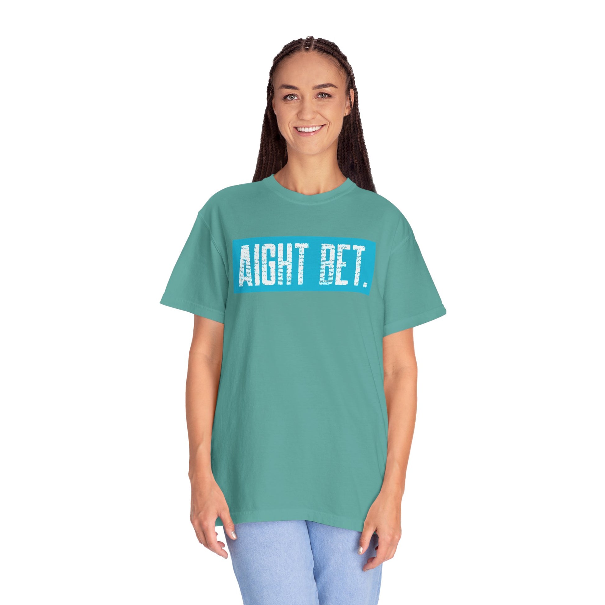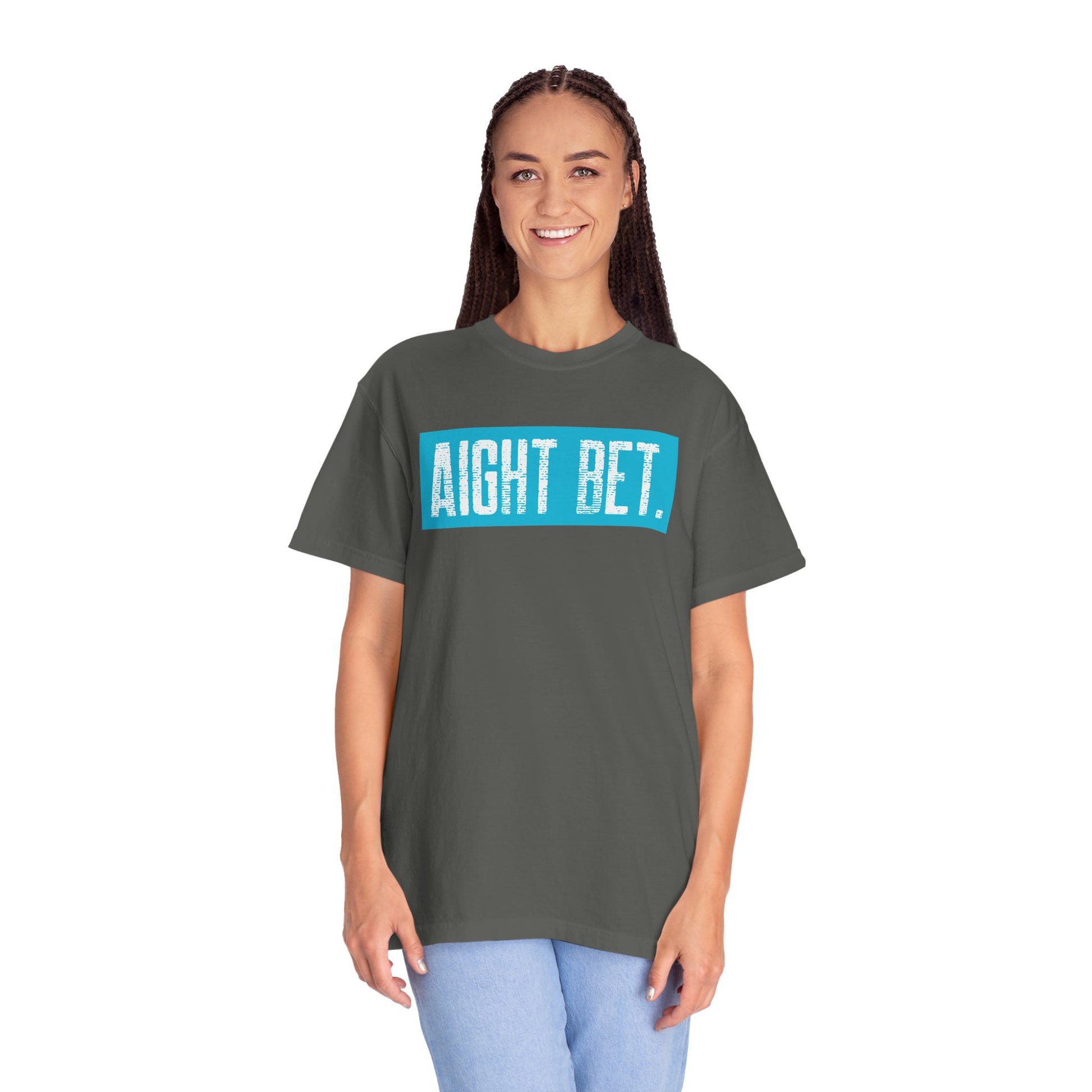Aight Bet T-Shirt — Casual Graphic Tee with Bold Blue Block Text