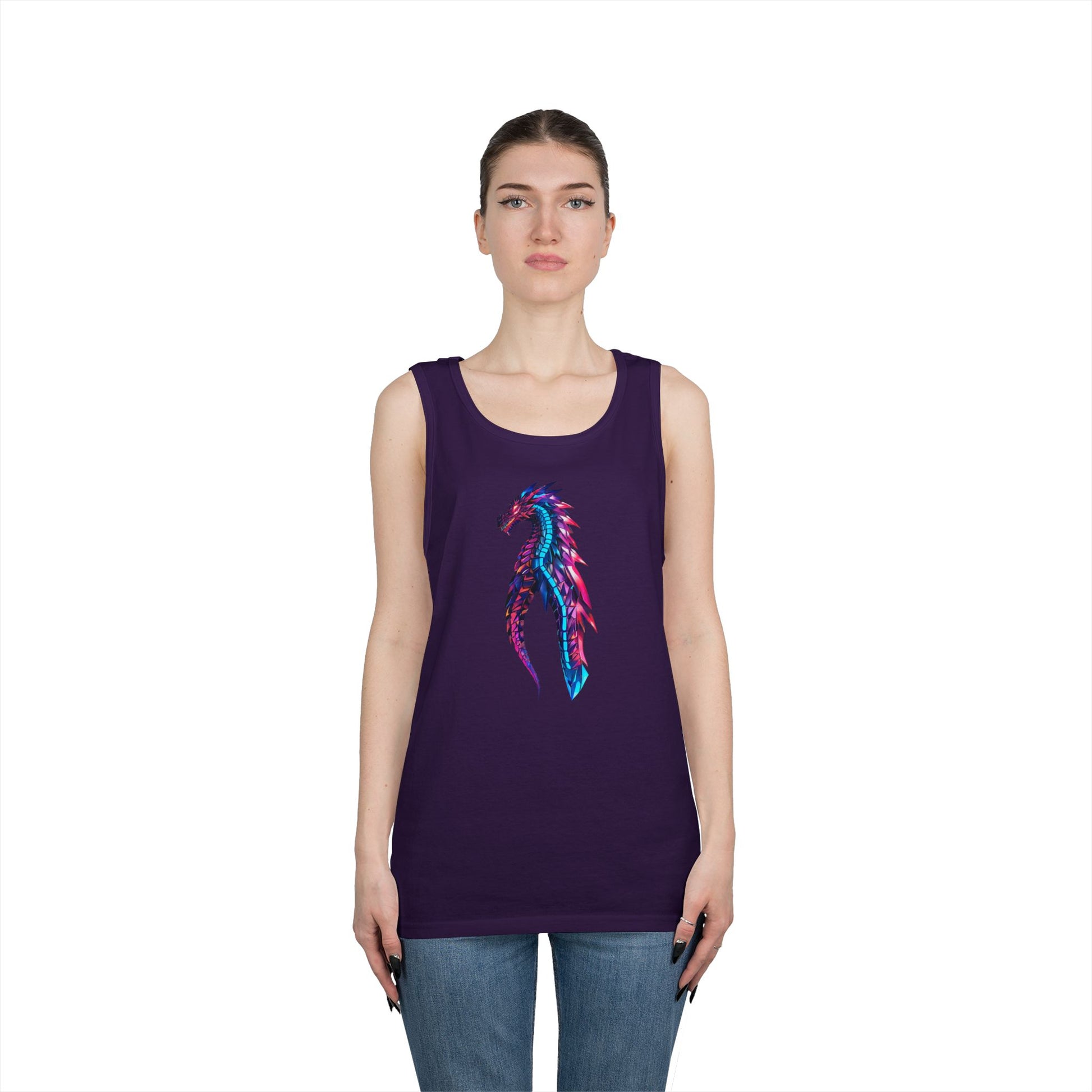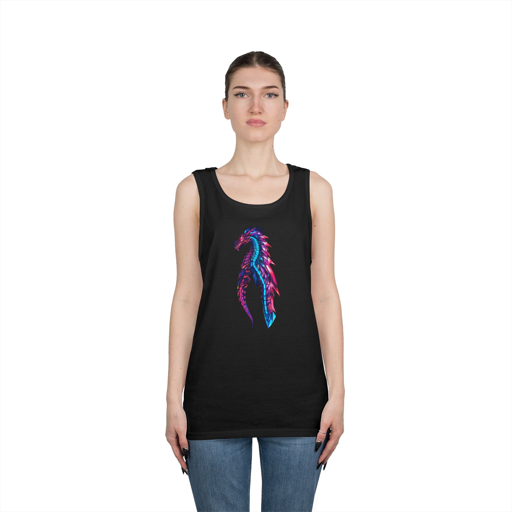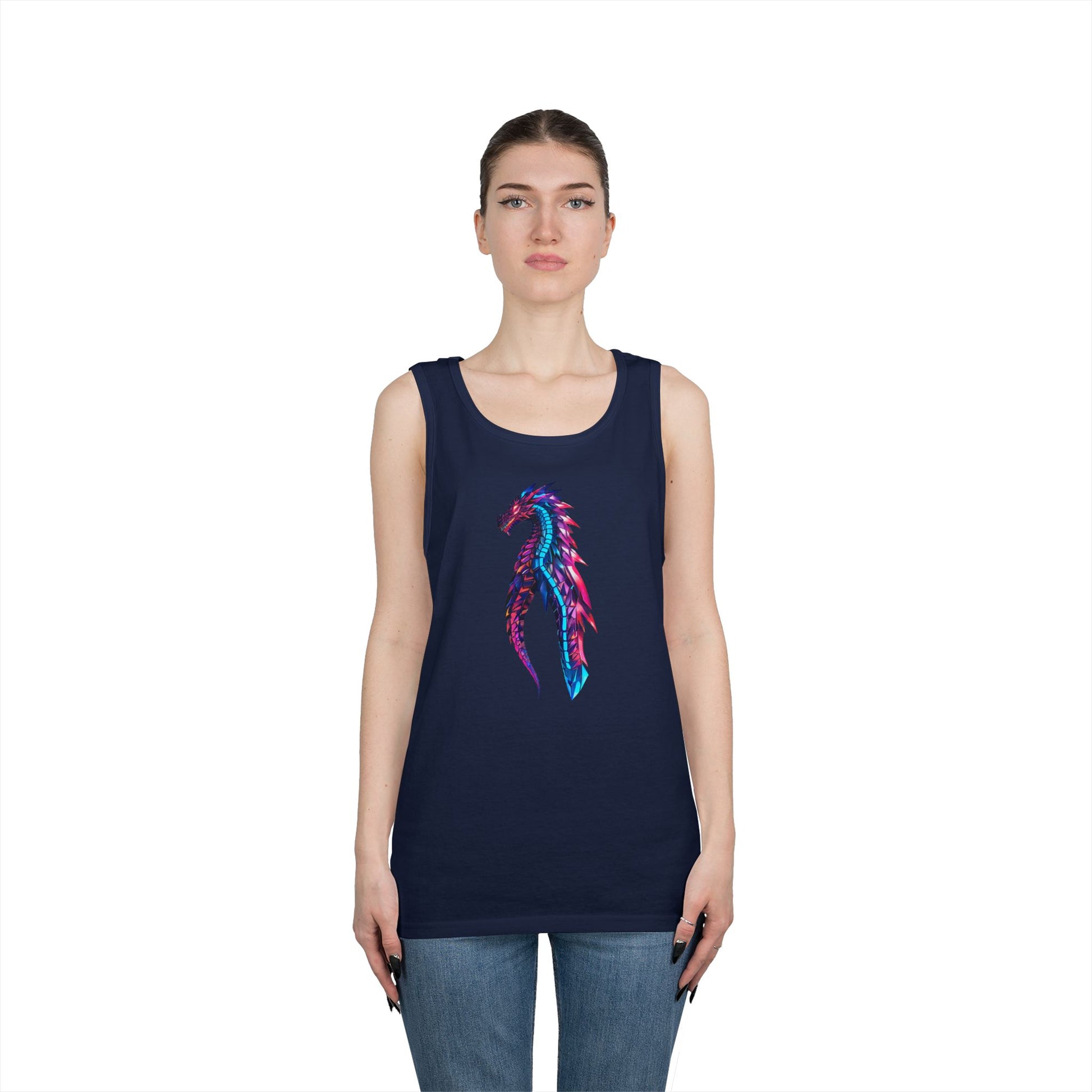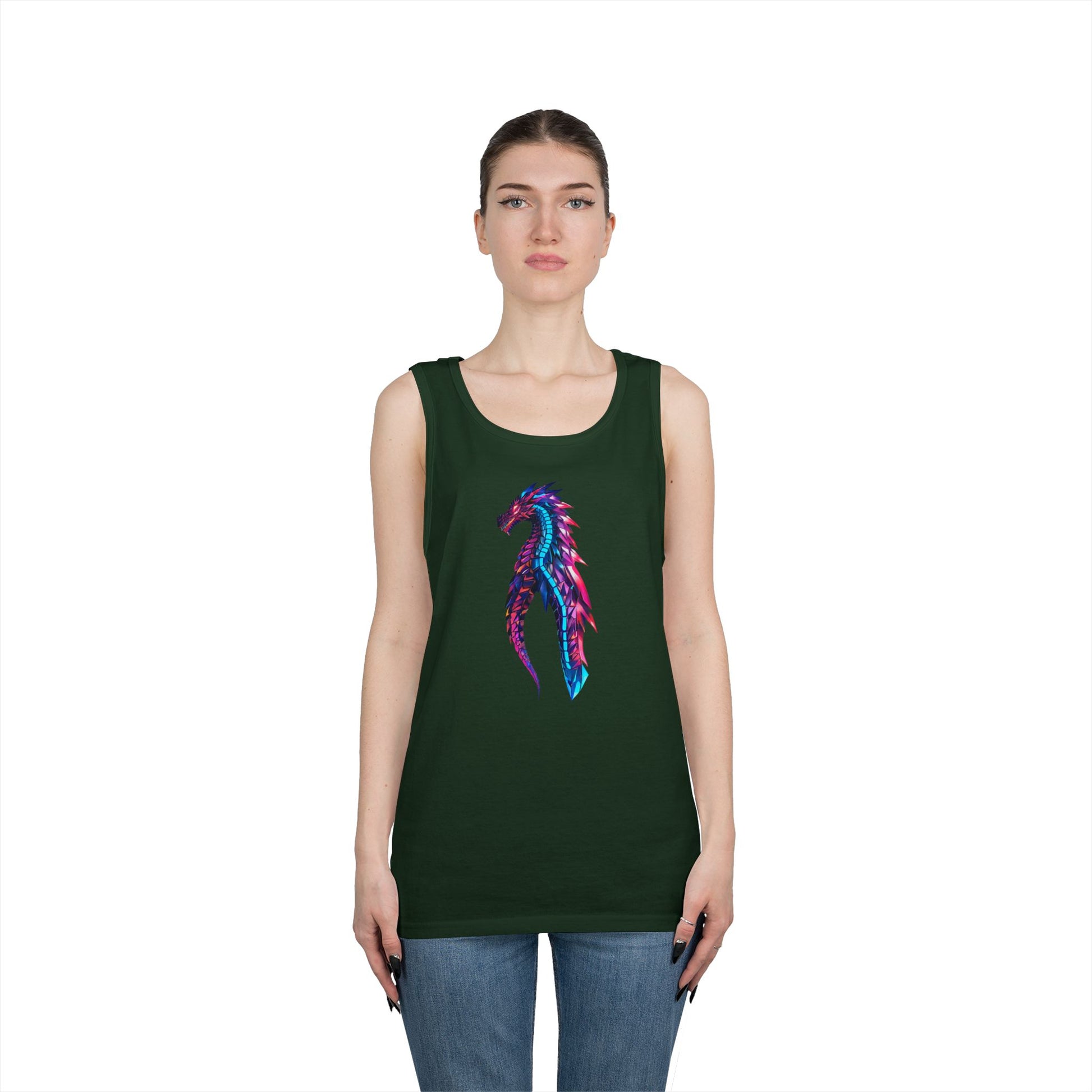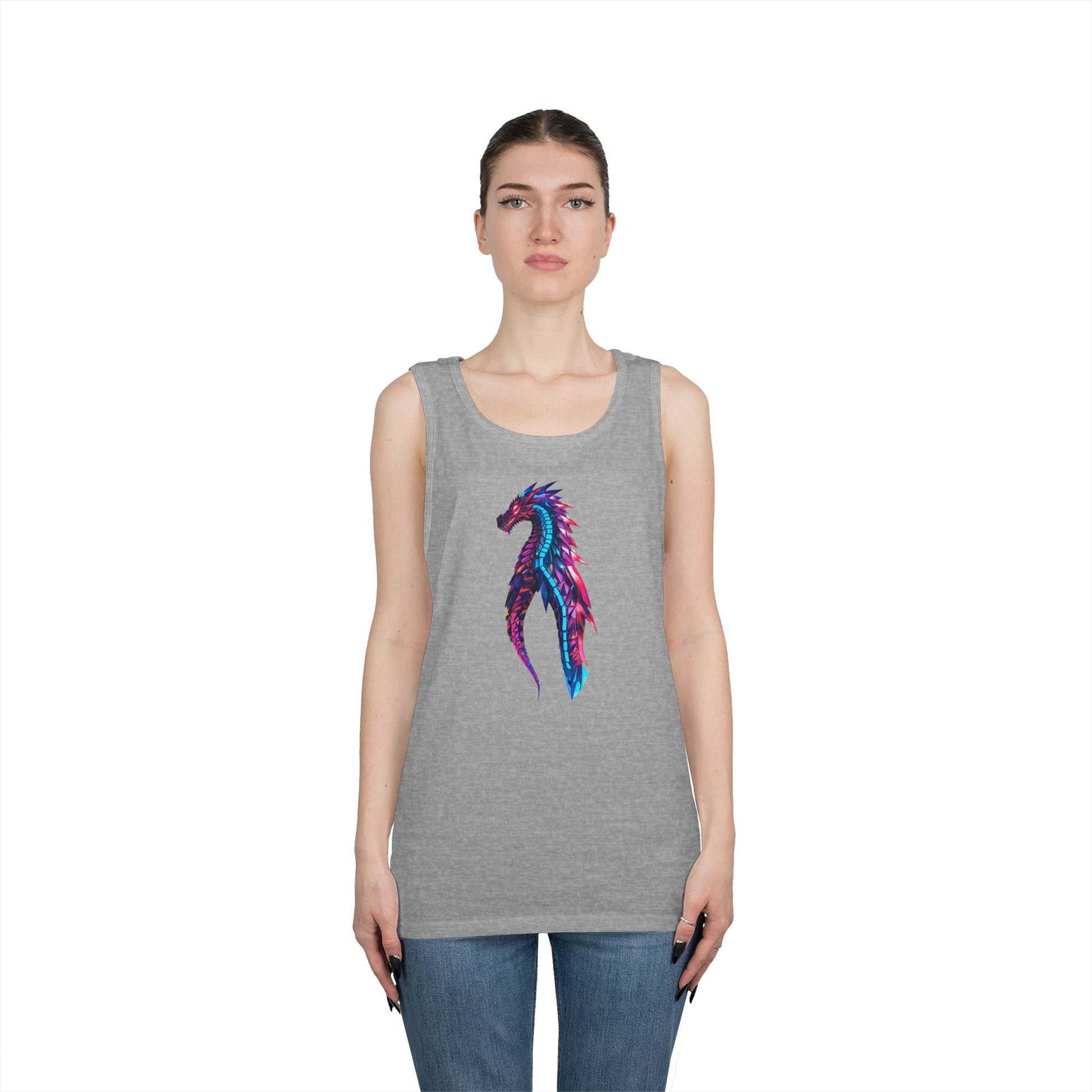 Dragon Art Unisex Heavy Cotton Tank Top, Casual Wear, Summer Fashion, Festival Outfit, Gift for Dragon Lovers
