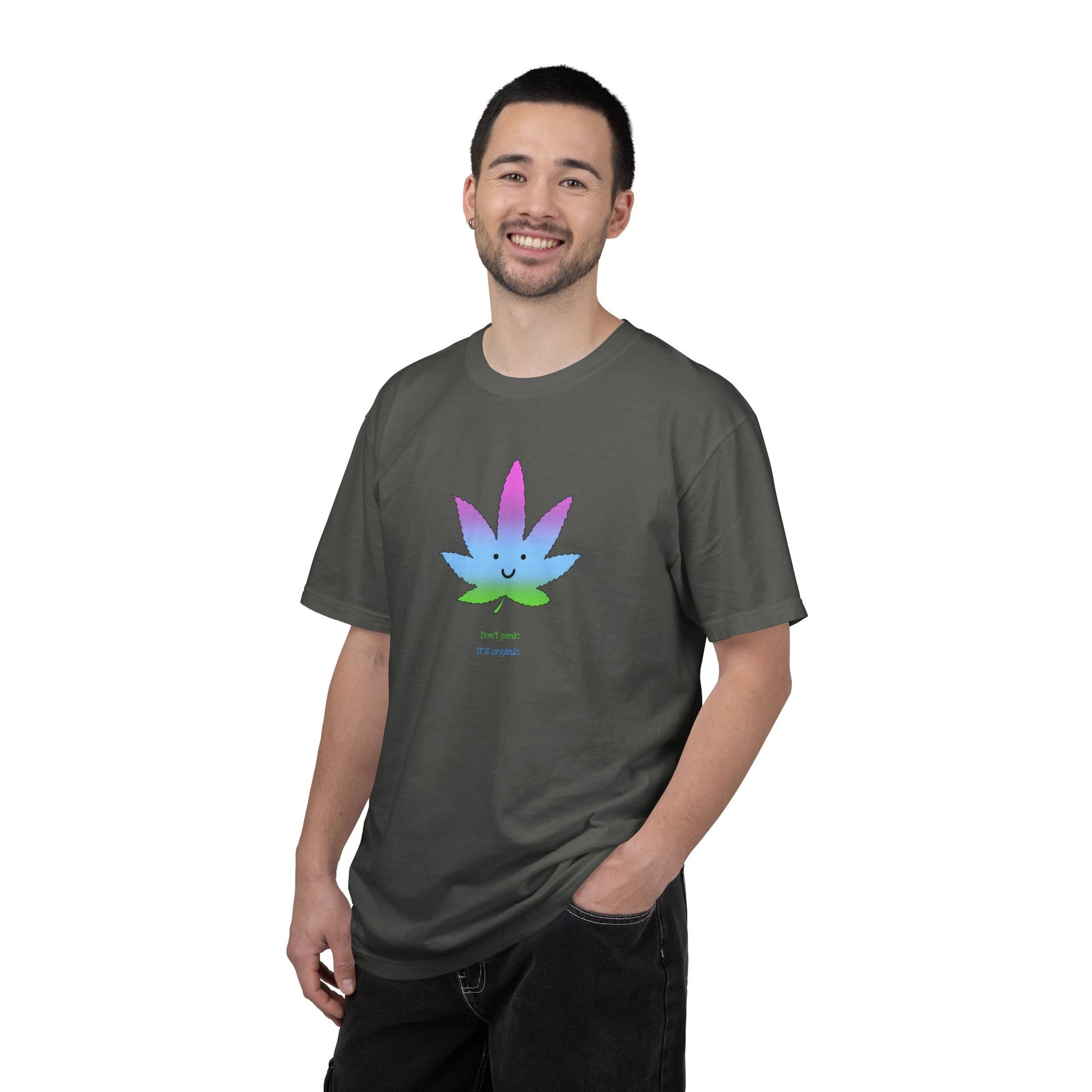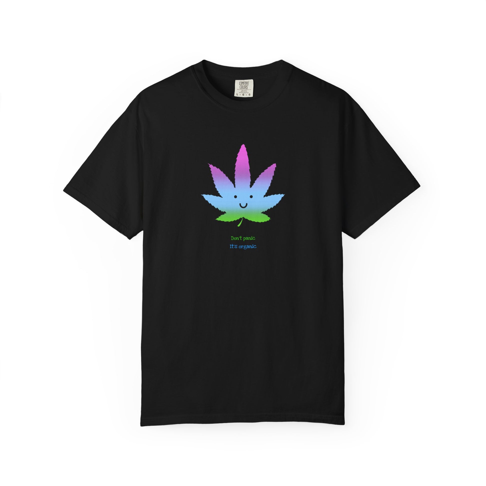 Soft, relaxed, and quietly playful — this garment-dyed tee wears like an old favorite while bringing a fresh, pastel smile to your day. The heavyweight 100% ring-spun cotton breaks in slowly and sits relaxed on the body, while the tubular, no-side-seam construction keeps the silhouette clean. Front-and-center is a gentle, watercolor-style leaf with a friendly face in soft gradient hues, a little touch of whimsy that reads as laid-back and approachable. Reach for it when you want something comfortable to lounge in, layer under a jacket for walks, or bring along to low-key hangouts where subtle personality matters.