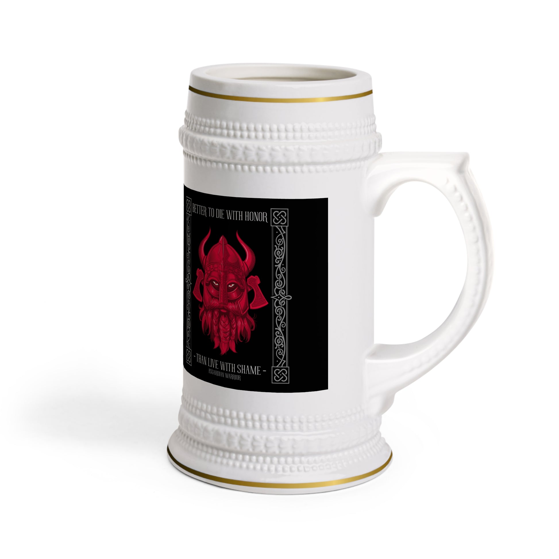 Red Viking Wolf Beer Stein Mug — Norse Myth Skull Drinking Stein for Oktoberfest & Gifts