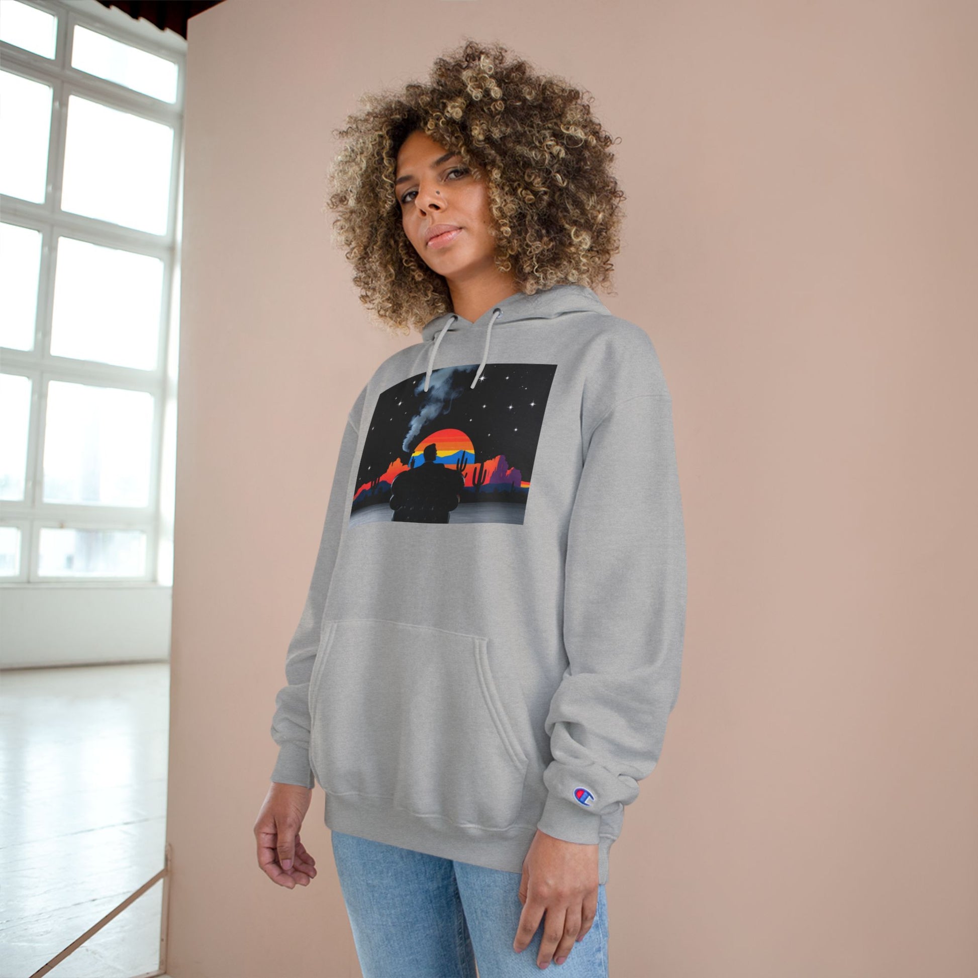 Retro Sunset Champion Hoodie, Cozy Pullover for Adventure Lovers, Gift for Fall, Unisex Hoodie, Vintage Vibe, Road Trip Essential