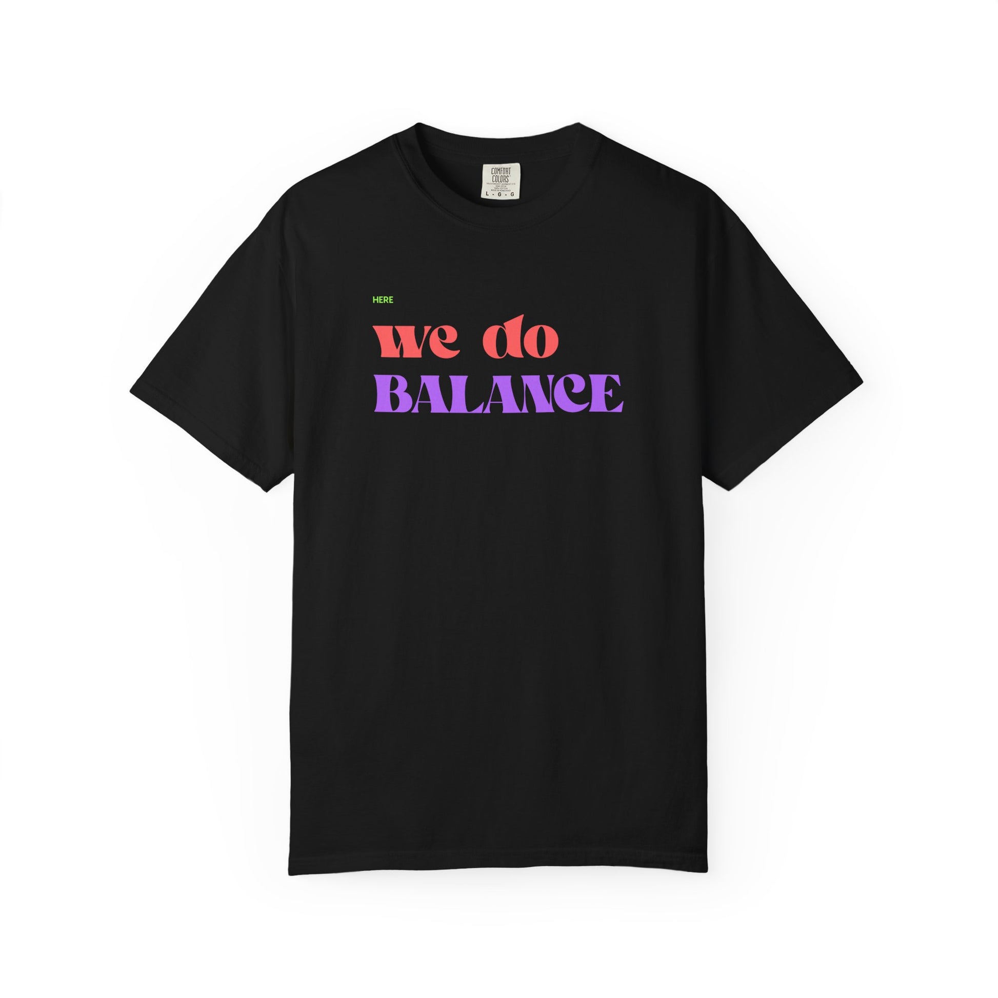 Soft, lived-in cotton with a quiet confidence. This garment-dyed tee wears in, not out — the colors soften, the fabric relaxes, and the message becomes part of your day. “we do BALANCE” sits in playful, sunset-hued type across the chest: a gentle reminder to move through hectic schedules with steady breath and a light heart. It layers under a cardigan for slow mornings, pairs with linen shorts for weekend runs to the farmer’s market, and tucks into high-waist jeans for late-afternoon walks. Lightweight but substantial, it’s the sort of shirt that follows long conversations, early yoga classes, and coffee on the porch without fuss. Reach for it when you want clothing that matches the pace you actually live at — calm, intentional, and a little joyful.